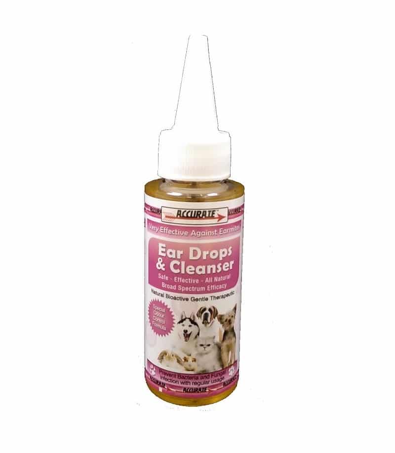 Accurate™ Ear Drops & Cleanser is a special formulation of ALL NATURAL HERBAL Oils, with natural goodness to help soften ear wax and remove unwanted debris. It is very effective against ear mites.