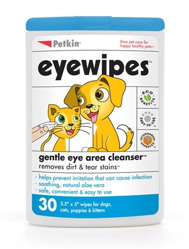 Veterinarian approved Eye Wipes provide the most convenient way to keep your pet’s eye area clean and healthy. The natural formula on these specialized pet wipes gently removes dirt, discharge and reduces tear stains found around the eyes to help prevent irritation that can cause infection.