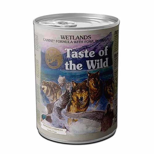 A great tasting complement to the dry Taste of the Wild recipes, the Wetlands Canine Recipe with Fowl in Gravy will satisfy even the most finicky dogs. This complete and balanced recipe can also be fed as your pet’s sole diet. Made with fowl, this recipe offers a taste sensation like no other. Contains duck, quail and turkey for a blend of fowl that provides proper amino acid nutrition. Supplemented with vegetables and fruits, this recipe delivers antioxidants to help give your friend a healthy lifestyle.